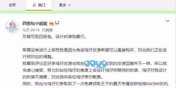 其实小编看到这个消息后也是有些疑惑的 。如果这个消息属实 , 更多“吃鸡游戏”话题,部分玩家希望直接购买军需物资中的道具, 毕竟小编正好有98k的皮肤。